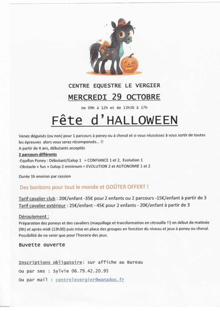 Le mercredi 30 octobre: Journée fête d’Halloween : Equifun, obstacle, voltige, etc et concours de déguisement
